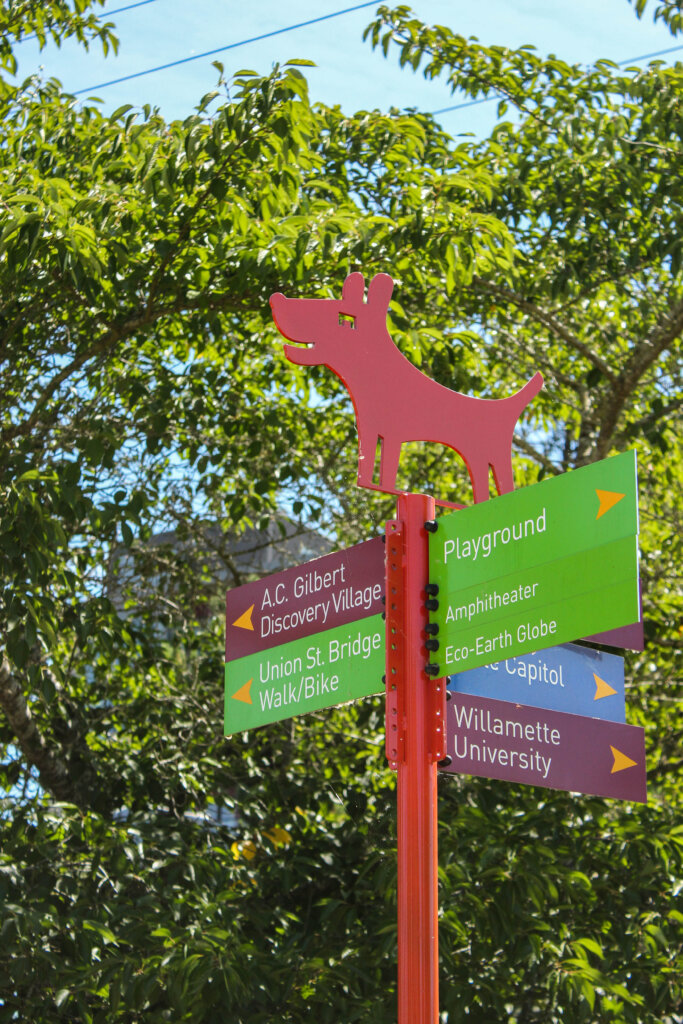 The new design also leans into a wildlife and nature theme that feels right at home in Oregon. Planned features include a log climbing element called the Beaver Dam, a rock scramble made with real boulders, and synthetic turf with color variations meant to resemble a watershed. The entry area will also include animal-themed riddle circles in the pavement, adding one more interactive touch for kids and their caregivers to discover together.