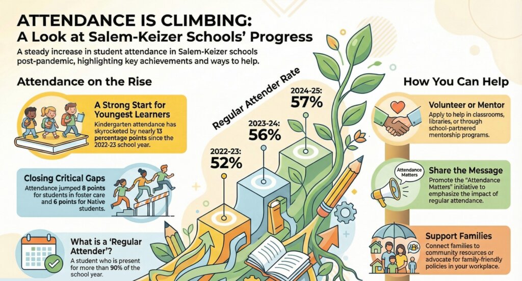 In the world of education metrics, overnight transformations are rare. Real, sustainable progress often looks like a steady, determined climb. That is exactly the trajectory Salem-Keizer Public Schools (SKPS) is following when it comes to student attendance. For the second consecutive year, the district has recorded an increase in the number of students regularly attending class, signaling that post-pandemic recovery efforts are taking root.