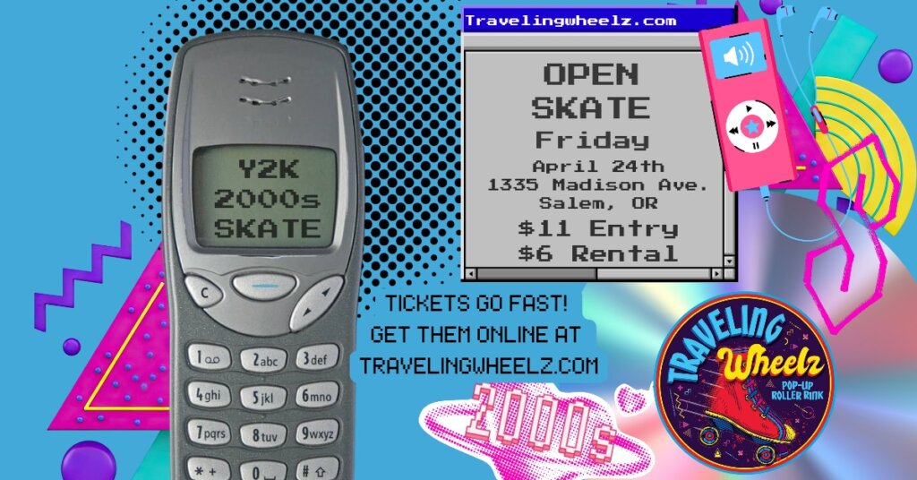 Traveling Wheelz is hosting a Y2K Open Skate Night filled with late-night fun and nostalgic flair. Every skater must have an admission ticket, and attendees may bring their own skates if they are in good condition. Skate rentals will also be available for the evening. Dress for the theme!