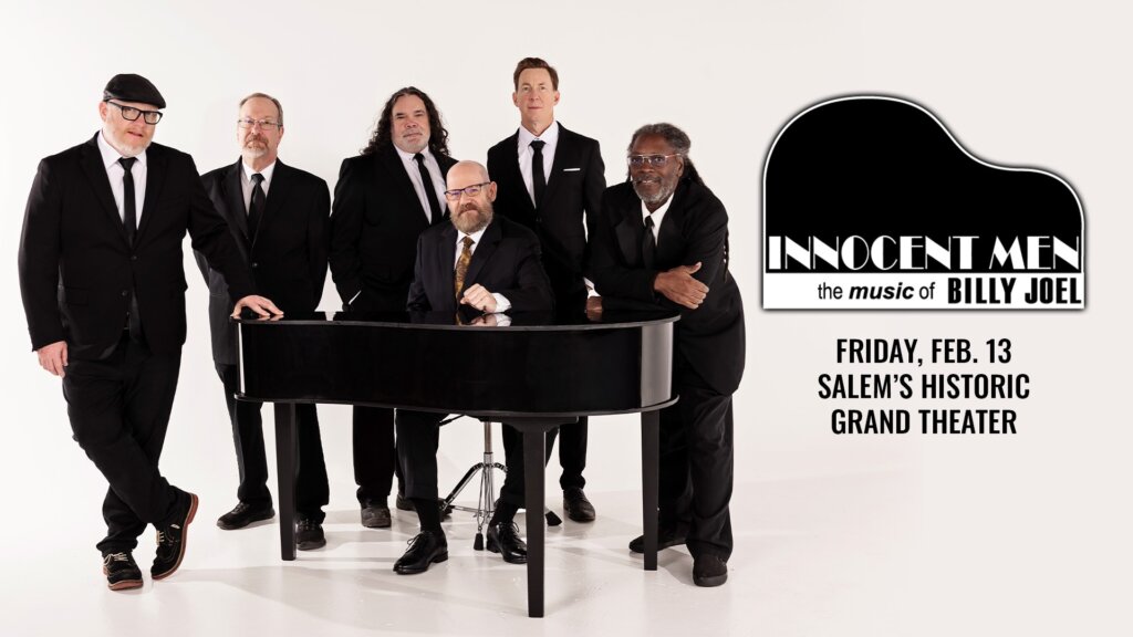 Salem’s Historic Grand Theater welcomes Innocent Men, a high-energy Billy Joel tribute band that brings the timeless sound and storytelling of one of music’s greatest artists. Led by vocalist and pianist Kevin Burkhart, the band performs favorites like “Big Shot,” “Scenes From an Italian Restaurant,” and “I Go to Extremes,” delivering a powerful, sing-along experience from start to finish. This show is all-ages.