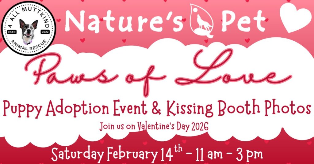 Celebrate Valentine’s Day with some four-legged friends at Nature’s Pet during the Paws of Love adoption event. 4 All Muttkind will be on-site with a litter of pups ready to find their forever homes. Guests can snap sweet memories at the DIY “kissing booth” photo station or purchase a printed keepsake to remember the day.