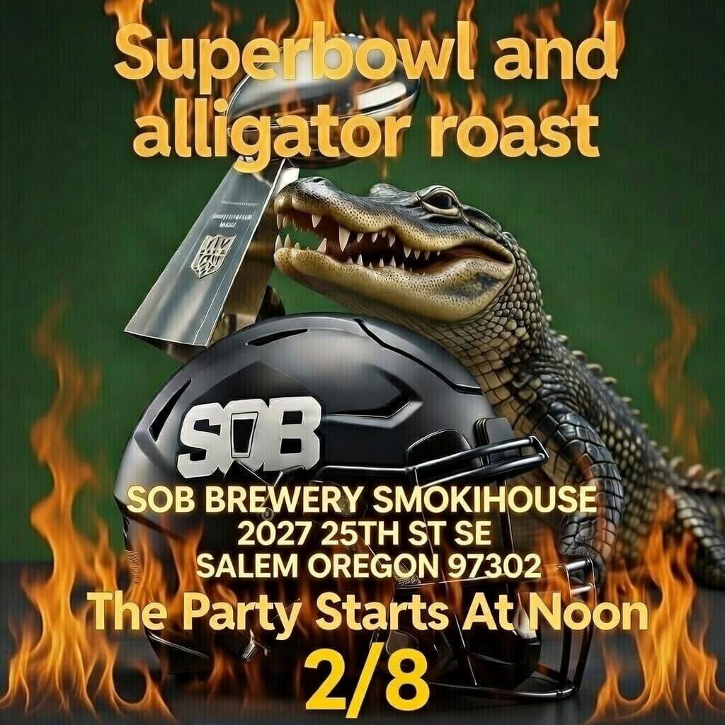 SOB Brewery Smokehouse is bringing back its popular Alligator Roast for Super Bowl Sunday! The party kicks off at noon and promises great food, brews, and football fun.